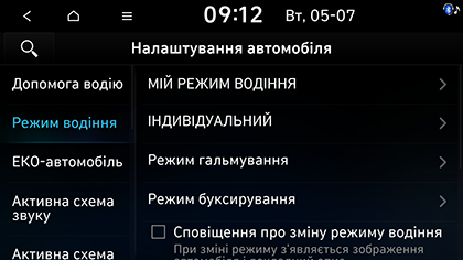 • Сповіщення про зміну режиму водіння: вмикає або вимикає сповіщення під час зміни режиму керування.