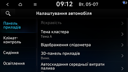 1. Натисніть SETUP > Автомобіль > Панель прилад..