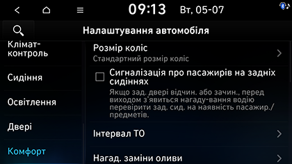 1. Натисніть SETUP > Автомобіль > Комфорт.