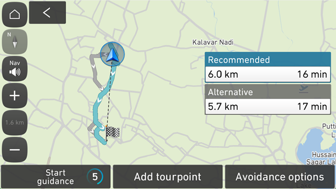 If your system is configured to telematics application, server based navigation guidance will work. When the network connection is available to the system, the route information such as traffic blockages, accidents reported, potholes information etc., can be reported from Hyundai server to the infotainment system to notify on maps.