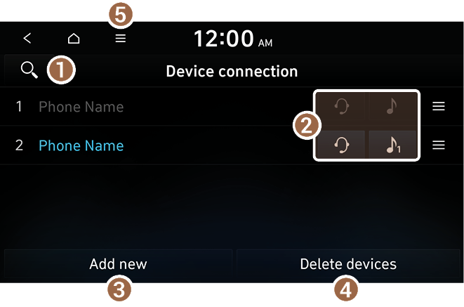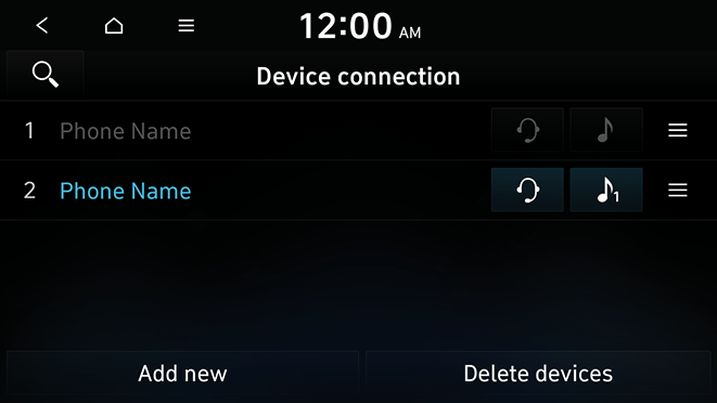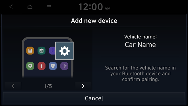 2. Turn on Bluetooth on the Bluetooth device to connect and select the vehicle system on the list of searched devices.