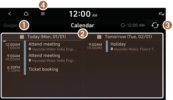 You can view schedule details and search destination of it by pressing on an event from the calendar screen.