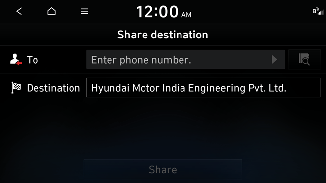 You can set a destination and share the location of it with others. Either we can manually enter the phone number to which we have to send or we can select from contacts in phone book by enabling bluetooth.