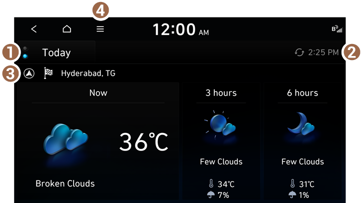 You can view weather information (e.g., temperature, humidity, precipitation and rainfall probability) for today, or the weather forecast.