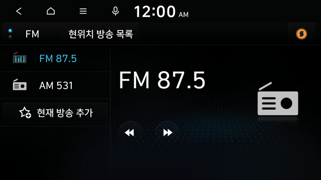 FM ▶ AM 순서로 라디오 모드가 변경됩니다.