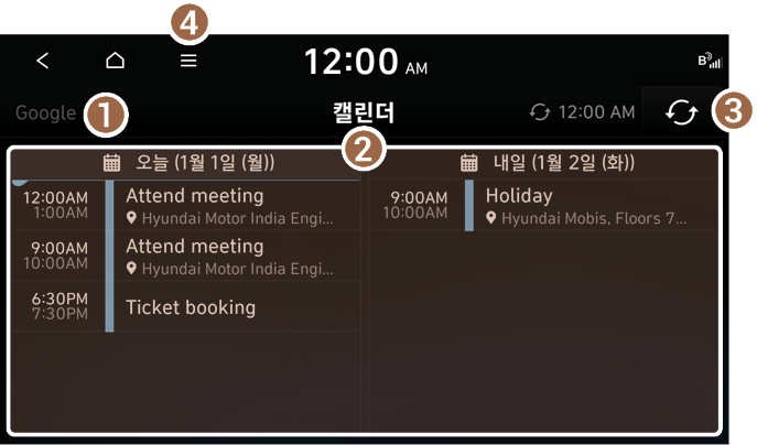 전체 메뉴 화면에서 블루링크 ▶ 캘린더를 누르세요.