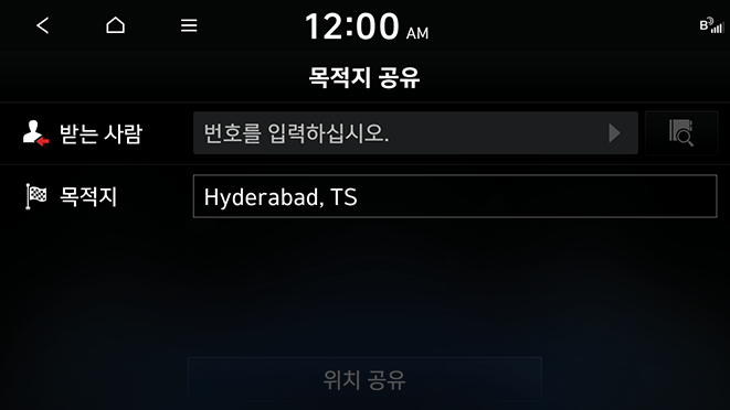 목적지를 설정하고 그 위치를 원하는 사람에게 공유할 수 있습니다. 이 정보를 보낼 전화번호를 직접 입력하거나 블루투스를 활성화하여 전화번호부에서 연락처를 선택할 수 있습니다.