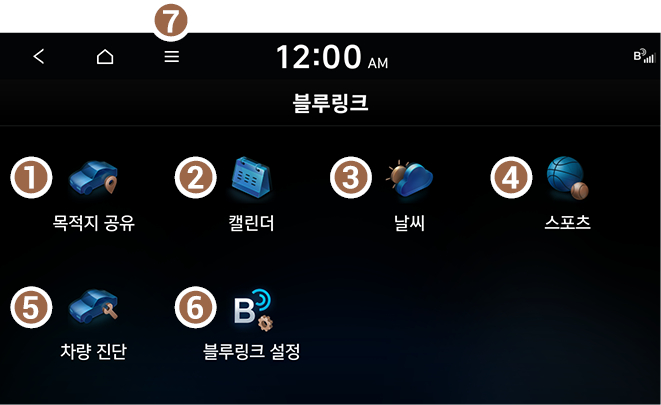 전체 메뉴 화면에서 블루링크를 누르세요.