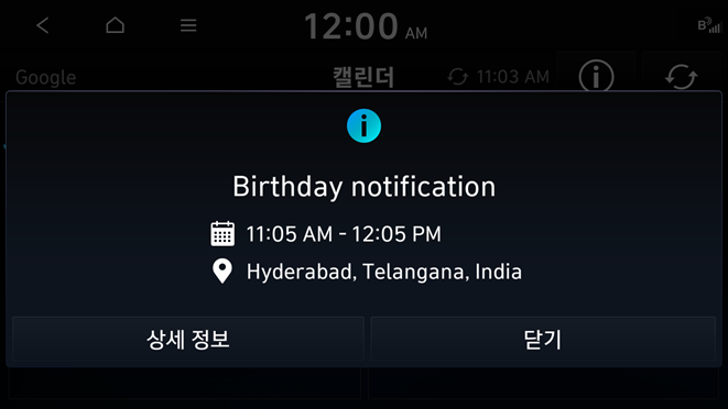 미리 입력된 알림 시간에 따라 일정 알림 팝업창이 표시됩니다.