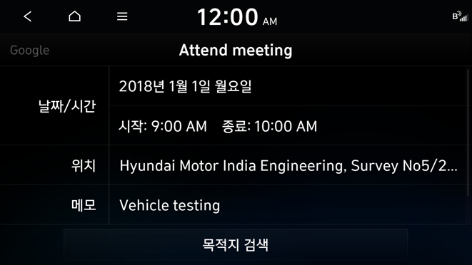 캘린더 화면에서 일정을 누르면 상세 정보를 확인하고 해당 목적지를 검색할 수 있습니다.