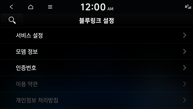 시스템의 블루링크 메뉴를 실행해 블루링크 서비스를 이용할 수 있습니다.