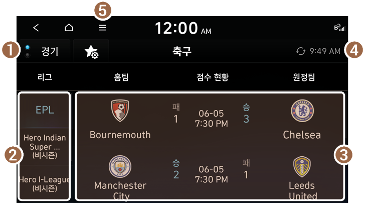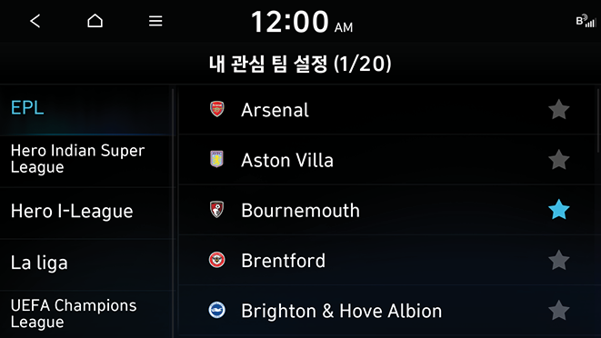 ▶ 내 관심 팀 설정을 누르세요.해당 팀의 경기 정보가 항상 스포츠 경기 목록 상단에 표시됩니다.