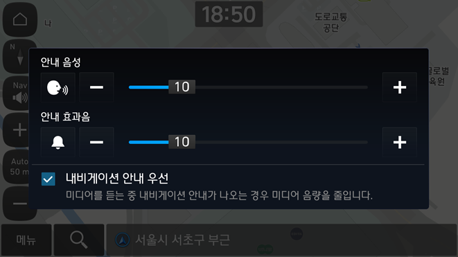 길 안내 음성이나 경고음 등의 음량을 조절할 수 있습니다.