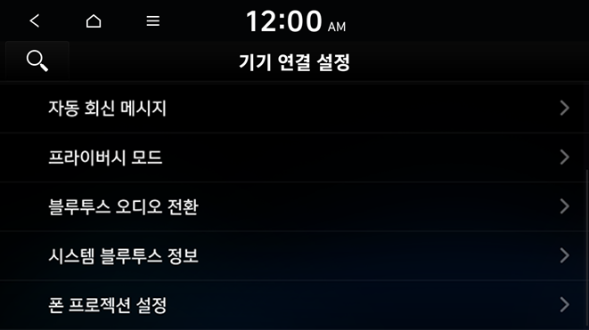 블루투스 기기를 관리하거나 사용 환경을 설정할 수 있습니다. 또한 시스템과 스마트폰을 연결하여 시스템 화면에서 스마트폰의 앱을 제어할 수 있도록 폰 프로젝션 기능을 활성화할 수 있습니다.