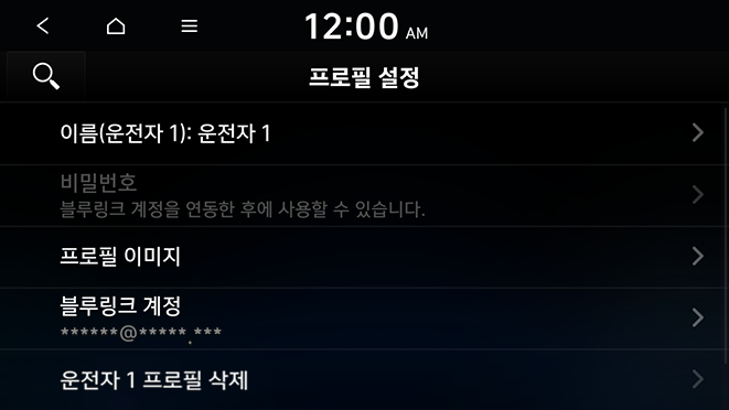 사용자 초기 설정 후 운전자별 프로필 항목을 추가로 설정할 수 있습니다.