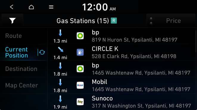 You can set a destination after searching the nearby points of interest by the category.
