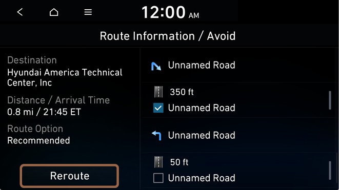 (route search screen not linked to connected car system)
