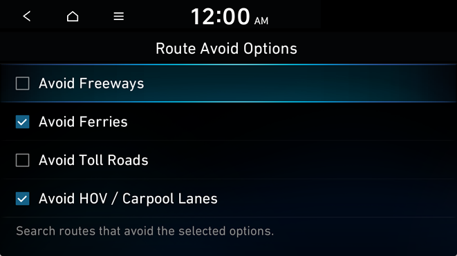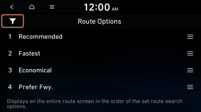 on the right of the preferred search option to the desired position to change the priority. To select the avoidance route option, press