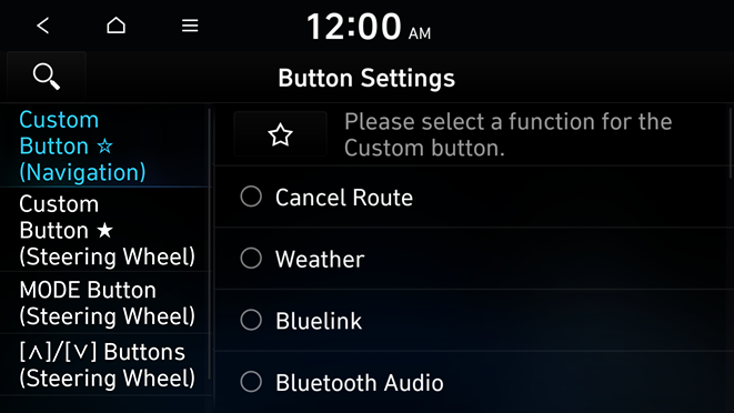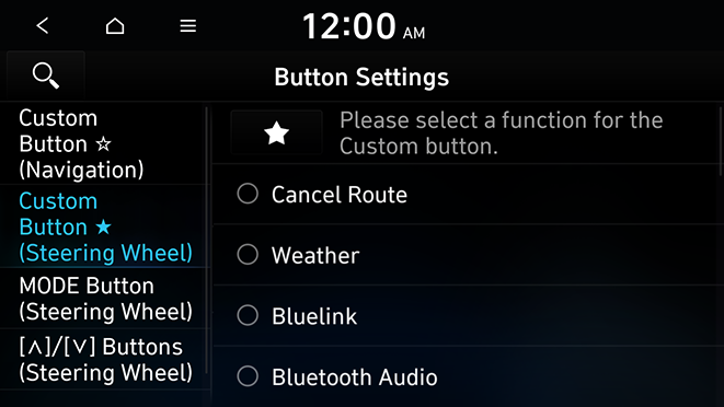 Specify the functions that can be activated by pressing the user button on the steering wheel. Set the frequently used functions as custom buttons to access them easily.
