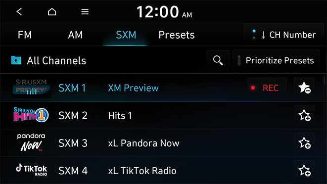 • The icon appears next to the first 10 SiriusXM channels saved. Once preset channels have been saved, the broadcasts from them are buffered automatically for your convenience each time you start the vehicle.