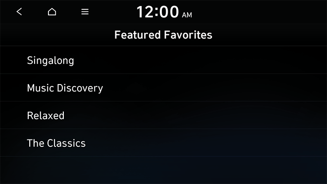 • •  Featured Favorites: Can listen to groups of channels provided by SiriusXM.