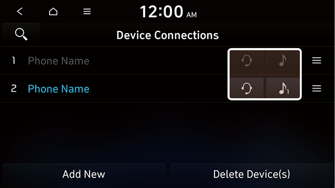 2. Turn on Bluetooth on the Bluetooth device to connect and select the vehicle system on the list of searched devices.