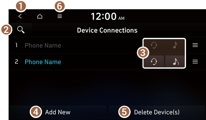 If you will no longer use a Bluetooth device or you want to add a new device when 6 devices are already registered, delete an existing registered device.