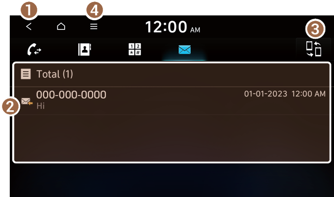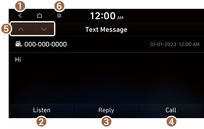 After connecting a mobile phone via Bluetooth, you can check the received messages through the system screen and listen to voice messages converted from the text messages. This option is available when a mobile phone is connected via Bluetooth. You can also send the brief reply message registered in the system.