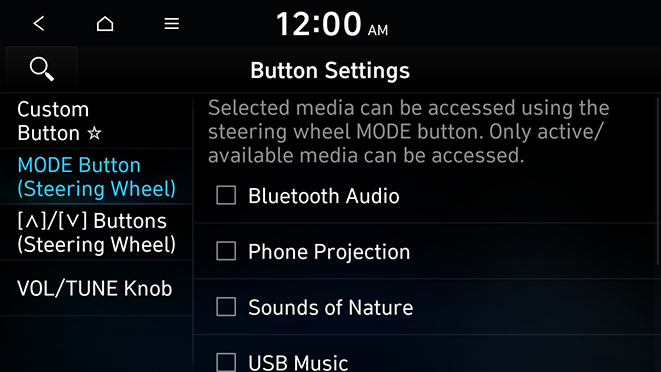 You can select the media mode to run when the button on the steering wheel is pressed.