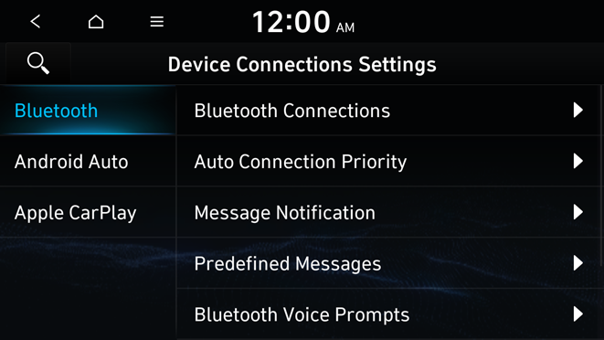 and enter a keyword to search for a setting item. You can also search for a setting item by voice.You can register or delete a Bluetooth device from the system and connect or disconnect a registered device.
