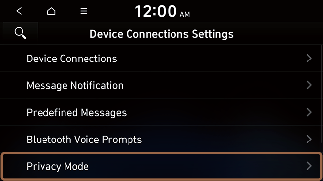 Enable or disable Privacy Mode. Hide data including contacts and call history from showing up on the system screen to protect privacy.