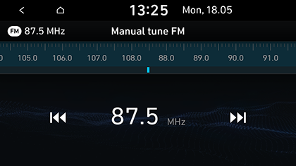 - Glisați bara postului spre stânga/dreapta pentru a găsi frecvența dorită sau apăsați [W/X].