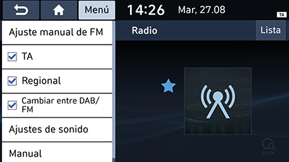 Esta función le permite desconectar la actual radiodifusión DAB y encontrar la misma radiodifusión FM de manera automática. Al escuchar la radio FM, el sistema cambia automáticamente a DAB cuando encuentra la misma radiodifusión DAB.