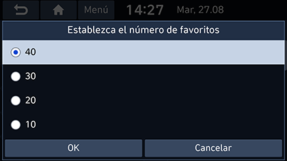 - Pulse [Favoritos] > [Menú] > [Establezca el número de favoritos].