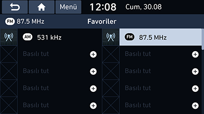 - Ekranda [Bant] > [DAB/FM] veya [FM] sekmesine basın.