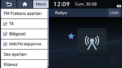 - [Menü] > [DAB/FM değiştirme] sekmesine basın.