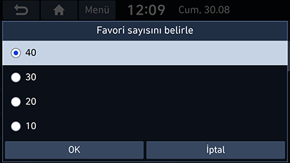 - [Favoriler] > [Menü] > [Favori sayısını belirle] sekmesine basın.