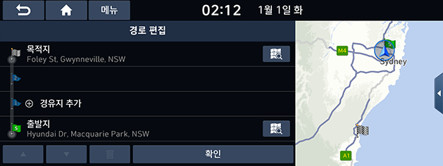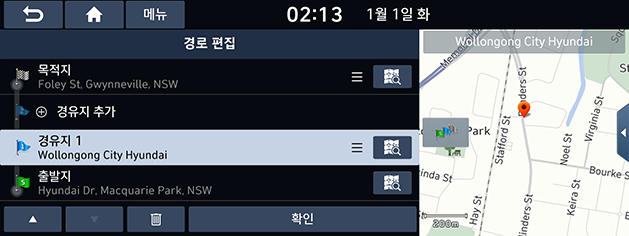 - 목적지 검색 기능을 이용하여 경유지를 검색하십시오.