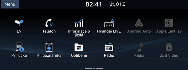 - [Hyundai Live]: Přesune se do nabídky [Hyundai Live].