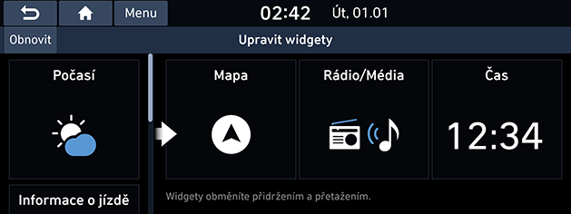 - Chcete-li přejít na obrazovku mapy, stiskněte v oblasti widgetu.