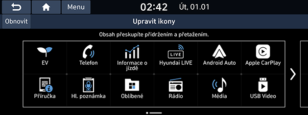 - Na obrazovce [Menu] > [Upravit ikony] stiskněte možnost [Úvodní obrazovka].