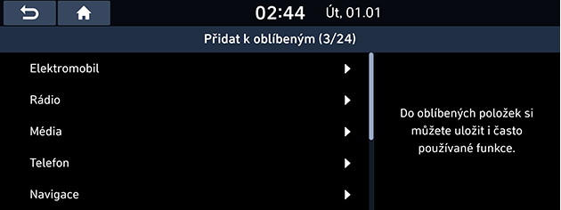 - [Oblíbené]: Přechod do nabídky [Oblíbené].