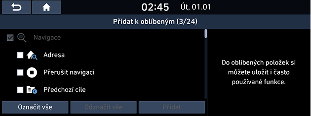 Přidávání oblíbených položek nabídky do [Oblíbené]