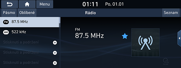 - Stiskněte tlačítko [Oblíbené] a poté vyberte frekvenci, kterou chcete poslouchat.