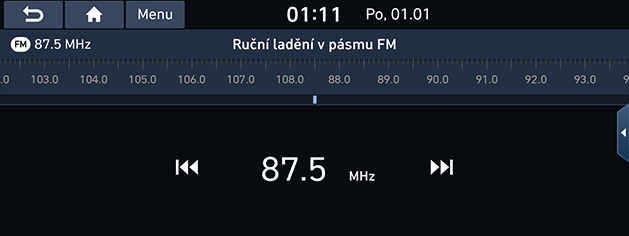 - V režimu FM stiskněte možnost [Menu] > [Ruční ladění v pásmu FM].