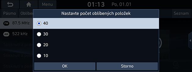 - Stiskněte tlačítko [Menu] > [Nastavte počet oblíbených položek].