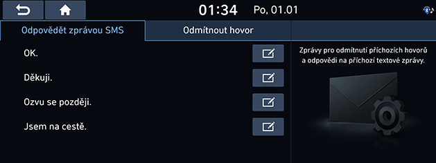 - Požadovanou zprávu můžete zvolit v možnostech [Odpovědět zprávou SMS] nebo [Odmítnout hovor].