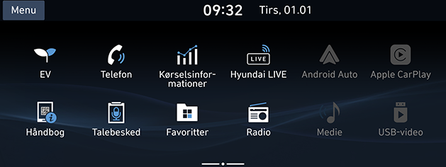 - [Hyundai Live]: Skiftes til [Hyundai Live] menu.