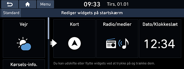 - Tryk [Menu] > [Rediger widgets] på [Startskærm] skærmen.