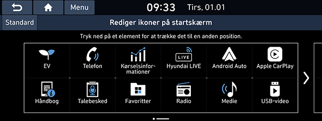 - Tryk [Menu] > [Rediger ikoner på startskærm] på [Startskærm] skærmen.